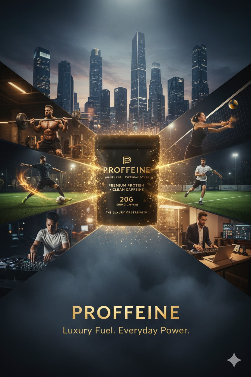 Proffeine isn’t just another supplement — it’s your daily fuel. We’ve combined 20g of high-quality protein with 100mg of natural caffeine to give you strength and focus in one scoop. No crash, no filler, just performance. Designed for those who push limits, chase goals, and never settle.